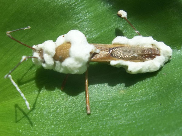 Setelah 4-8 hari, serangga yang terinfeksi akan mati dengan menunjukkan munculnya gumpalan putih seperti kapas disekujur tubuhnya.